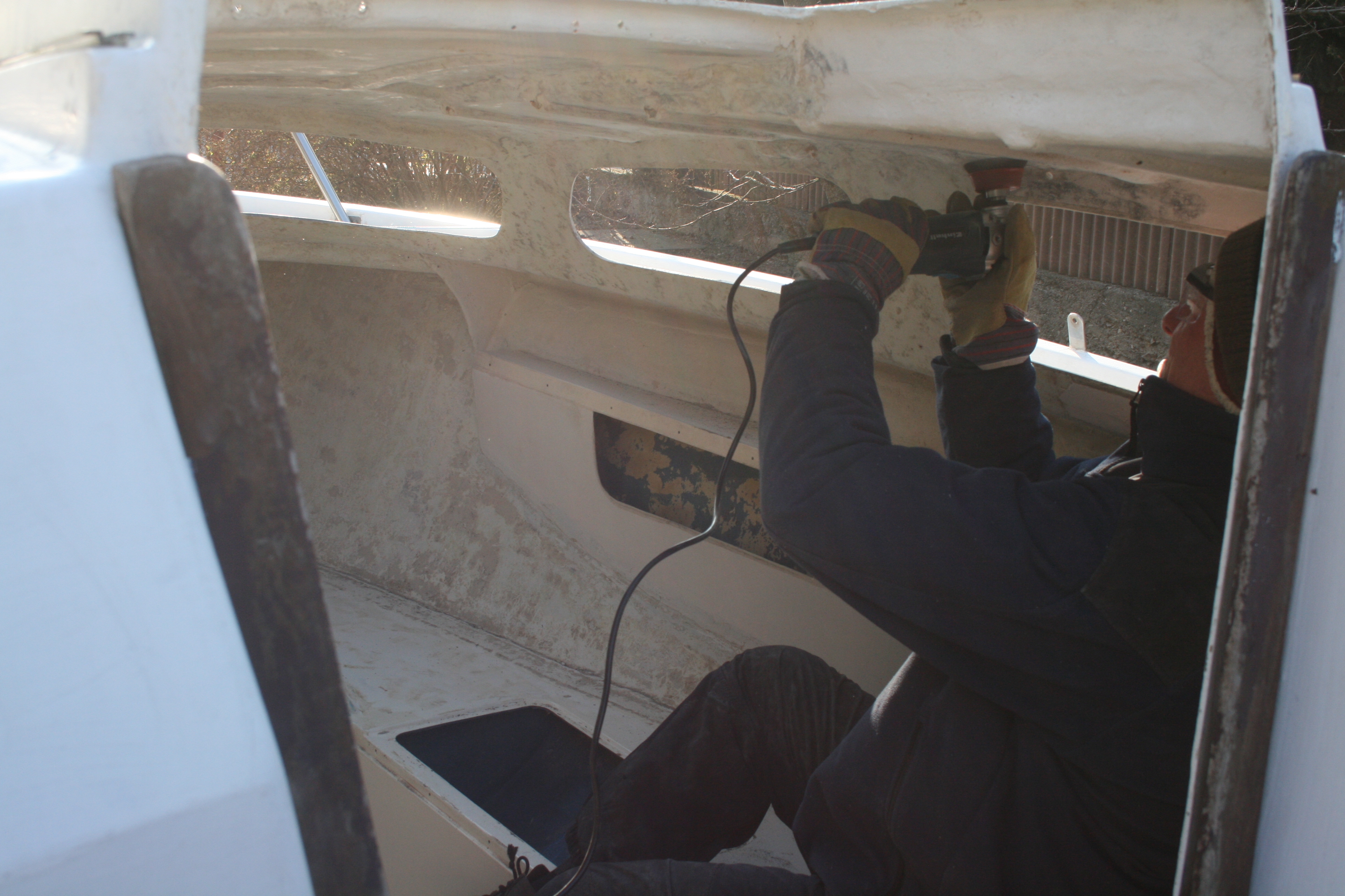 Nadstavba a kokpit boli natrené niekoľkými vrstvami syntetickej všade sa odlupujúcej farby. Už sú pekne vybrúsené až na zdravý gelcoat.