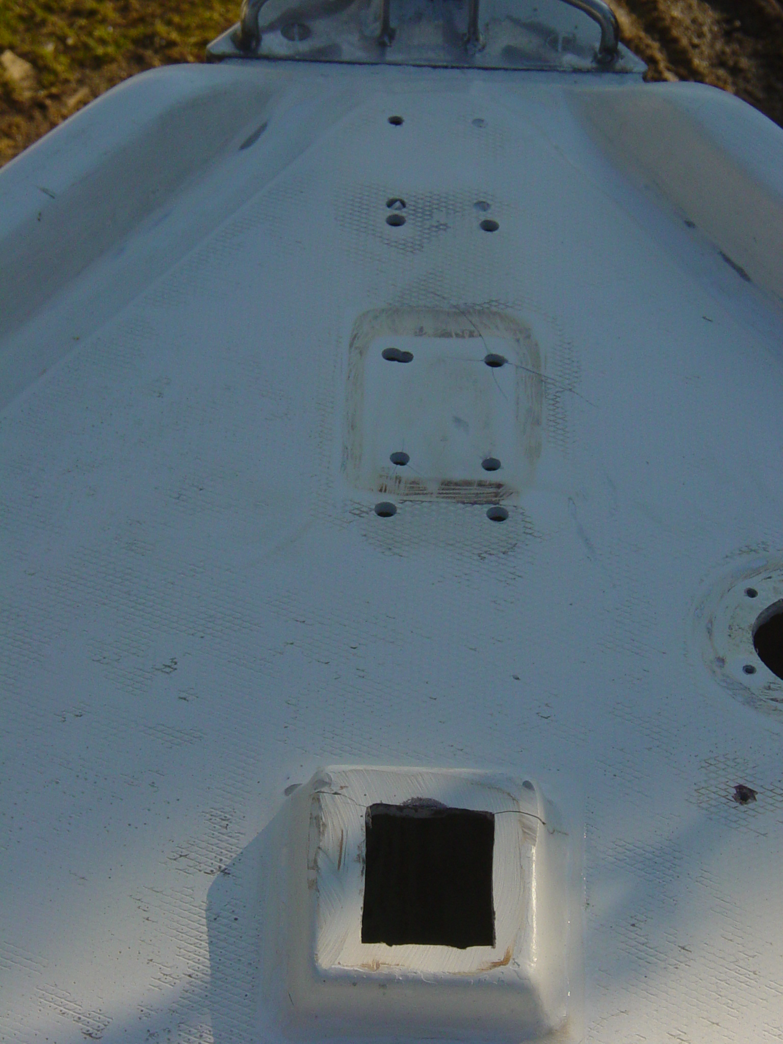 Skeg bol od mnohých nárazov veľmi poškodený, rozhodol som sa vy brať ho a opraviť. Aby som sa sa dostal k maticiam, musel som v kokpite vyrezať prístupový otvor.